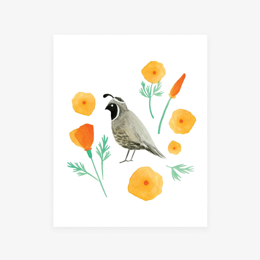 Quail and California Poppies / Art Print