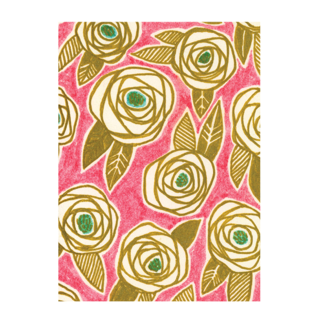 Gold Roses on Pink / Blank Note Cards