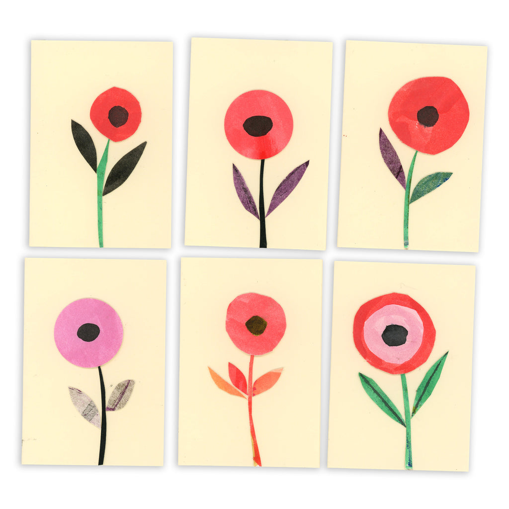New! Sets of Six Hand-painted and Collaged Mini Cards