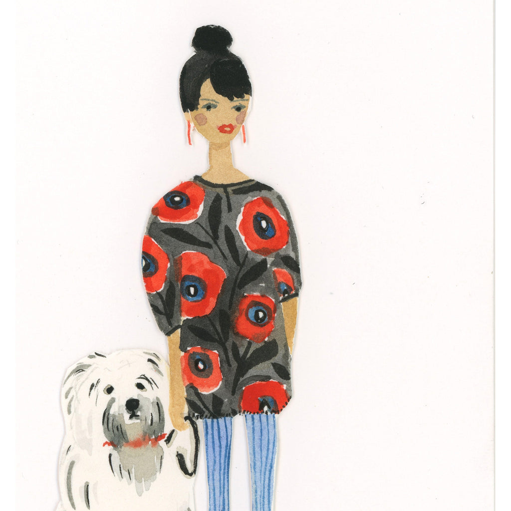 New! Dark Haired Girl with Sheepdog / handmade full size card
