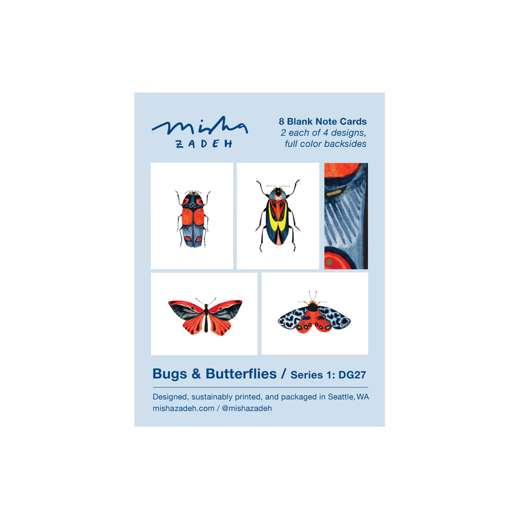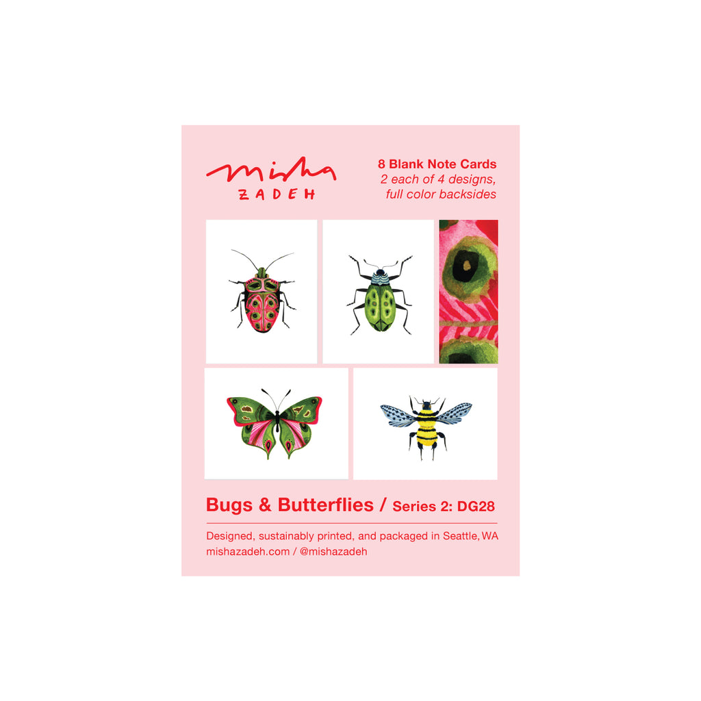 Bugs & Butterflies: Series 1 / Boxed Set of 8 Note Cards, 2 each of 4 designs