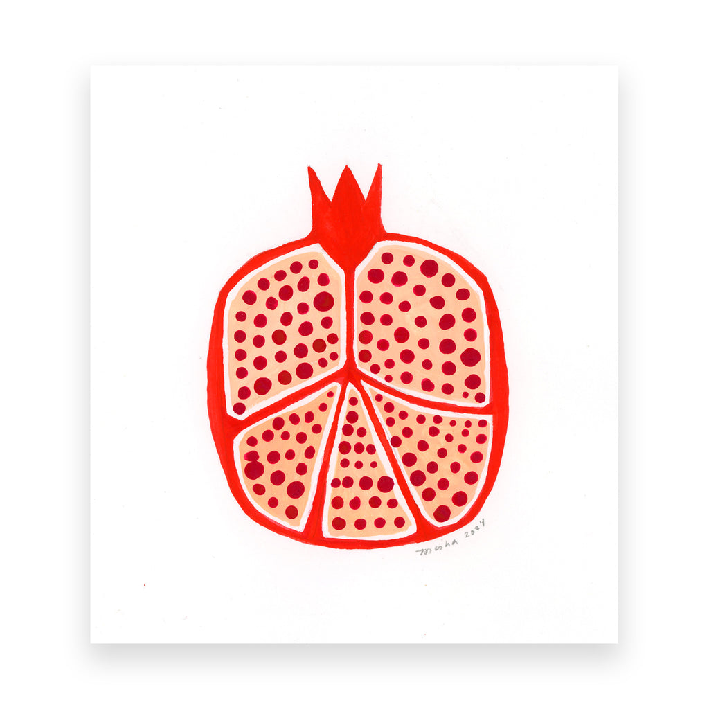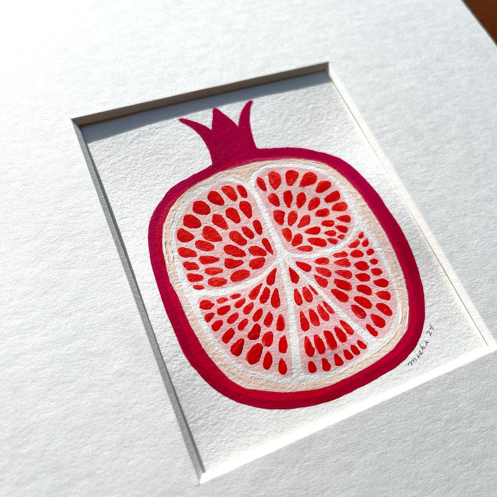 "November Pomegranate, No. 4", Matted Original Gouache Painting
