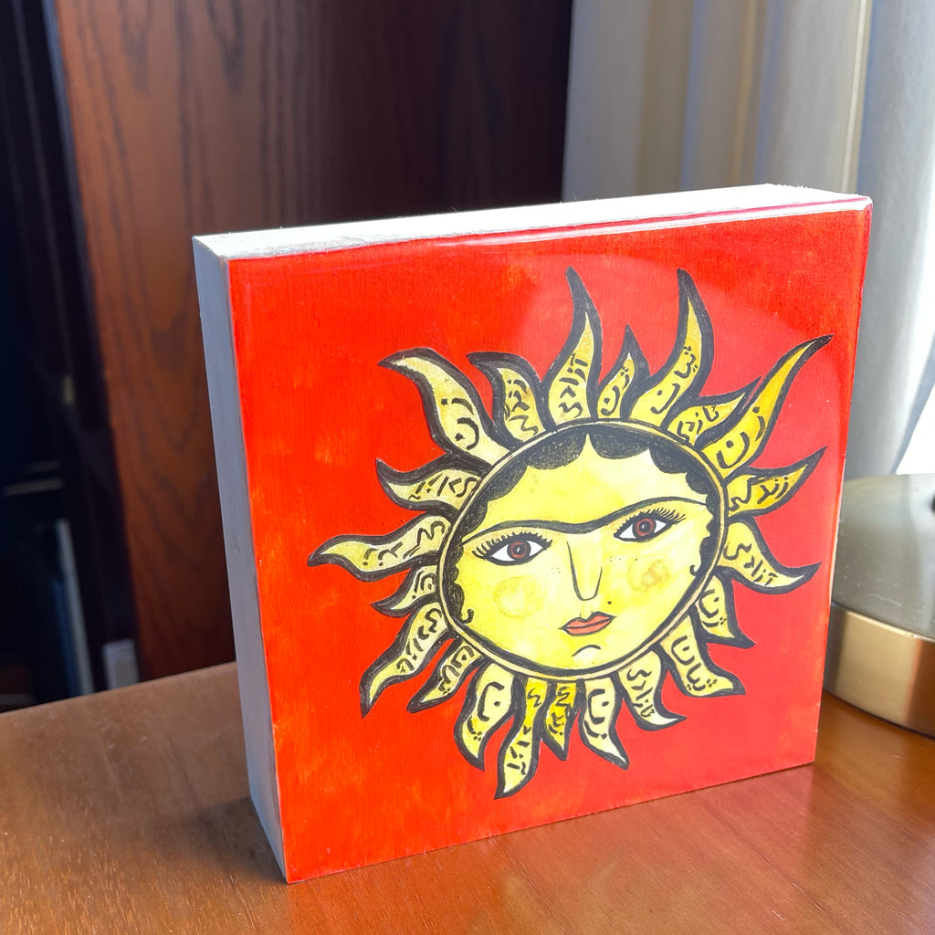 SALE -- Khorshid Khanoum (Persian Sun Lady) Mixed Media on Wood Panel